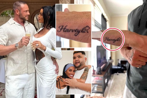 The Dubai-based businessman showed off the new inking on social media, with the design featuring Harvey’s name written across the side of his hand.